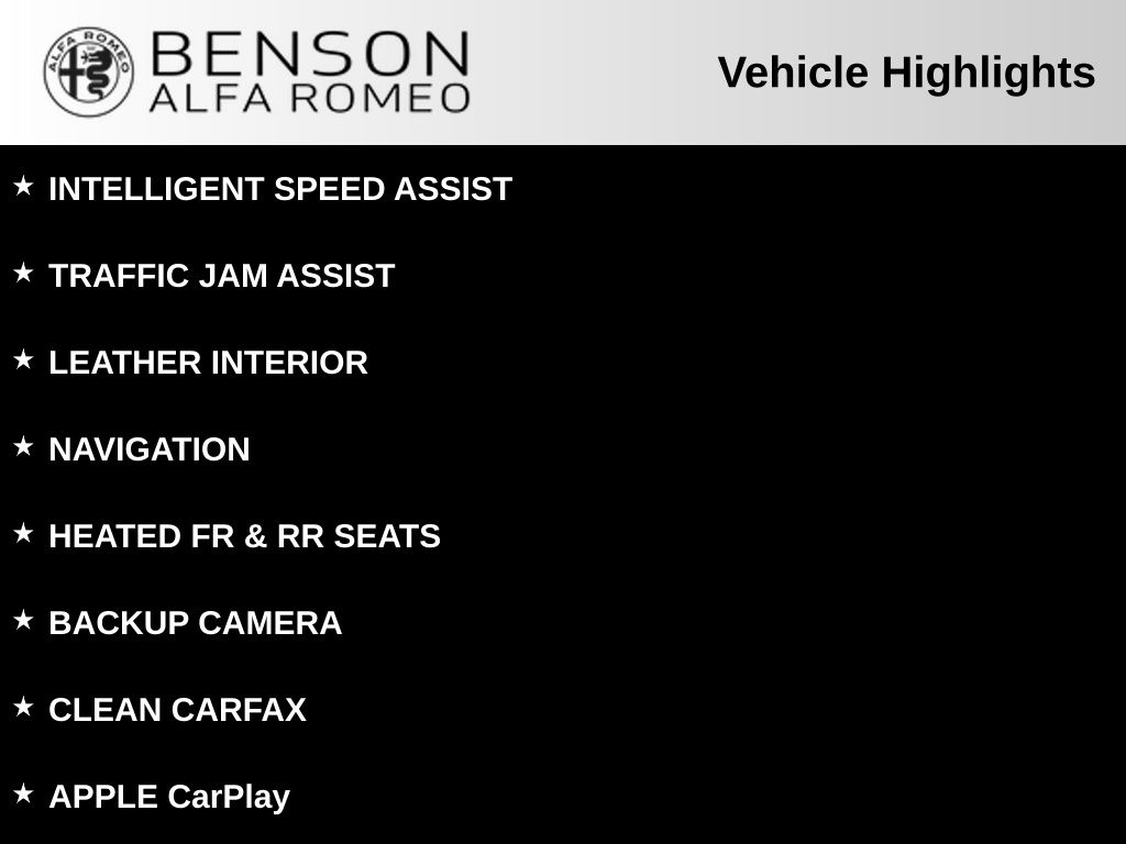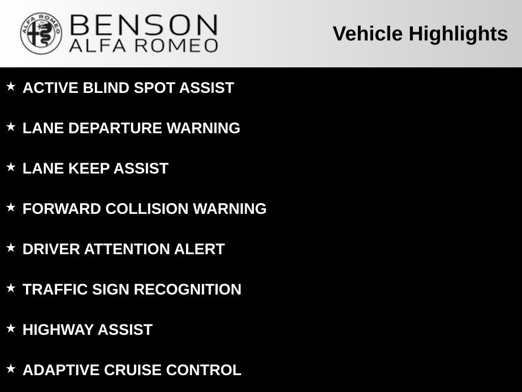 Benson Alfa Romeo is dedicated to your satisfaction before, during, and after your purchase. We'll go the extra mile to take care of you.