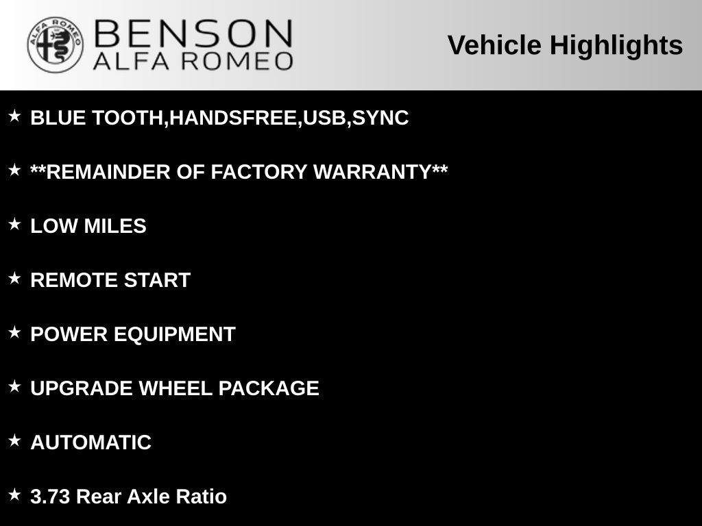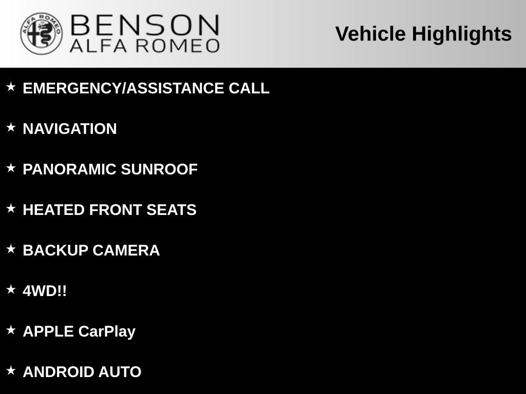 Benson Alfa Romeo is dedicated to your satisfaction before, during, and after your purchase. We'll go the extra mile to take care of you.